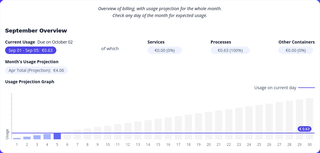 Pay for what you need. Inspect resources usage any time throughout the month.